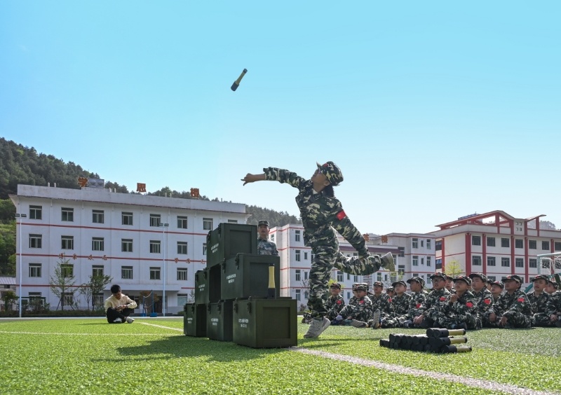 在空间布局方面,以曾家一小营地为核心,原乡训练基地为基底,串联川洞天坑、吊滩河、飞拉达三大军事研学户外基地,构建了一个涵盖军事训练、户外攀岩、非遗传承、野外拉练、地质探索、文化交流等多方面的军事体验体系,彻底打破了传统课堂的束缚,使原本抽象的国防教育变得生动具体、触手可及。