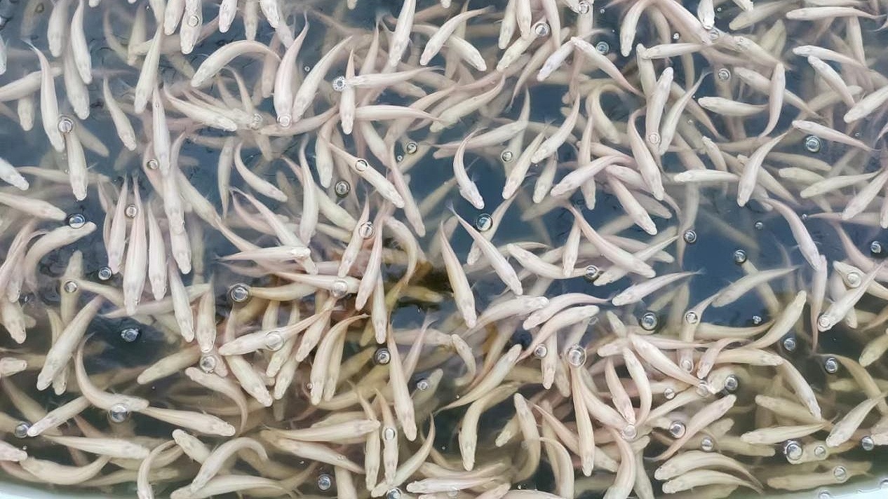 5月23日,内江市市中区朝阳镇的白乌鱼养殖场内生机盎然。水面波光粼粼,白乌鱼翻腾抢食,工人们有条不紊地开展繁育工作。
