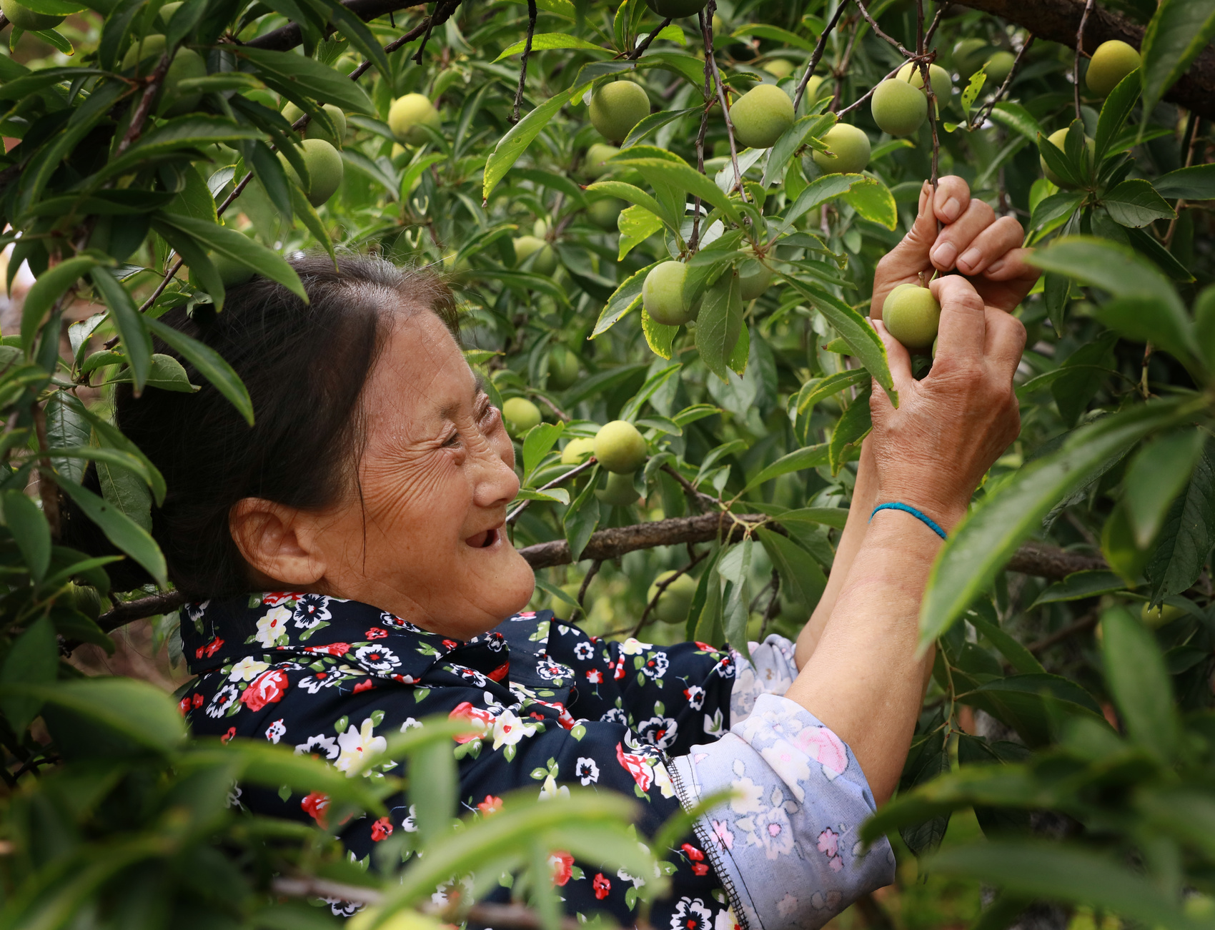 这棵饱经76载风雨的母树,仍年年捧出几百斤果实。张光碧想起20年前的夏天,是李子大丰收的一年,她蹲在树下分拣,竹筐里青绿泛黄的李子堆成小山,被霜包裹着的果子在阳光的照射下,如翡翠般透亮。“那年,我们的李子1.2元一斤,比大米贵得多。”她笑着背着手,眼神里有些得意,“现在要卖到10块钱一斤喽,超市里的李子才五六块钱。”