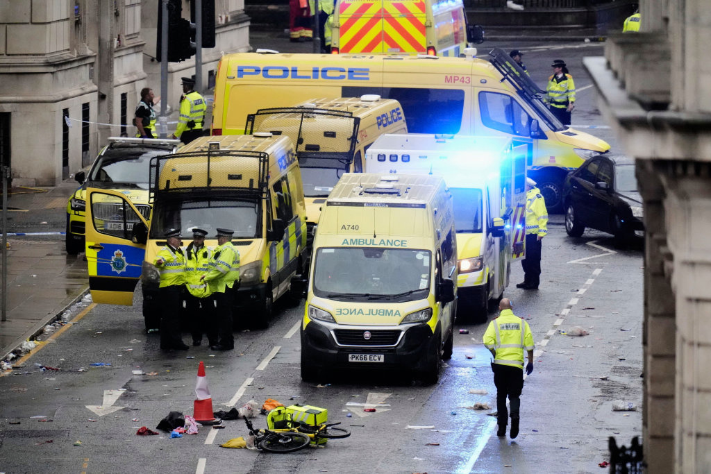 5月26日,警察和应急人员在英国利物浦的汽车冲撞事件现场工作。