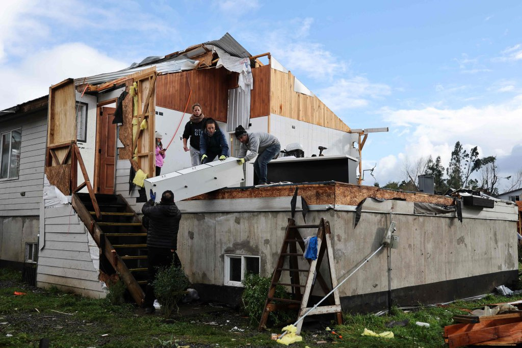 5月26日,智利巴拉斯港当地居民在龙卷风过后清理房屋残骸。