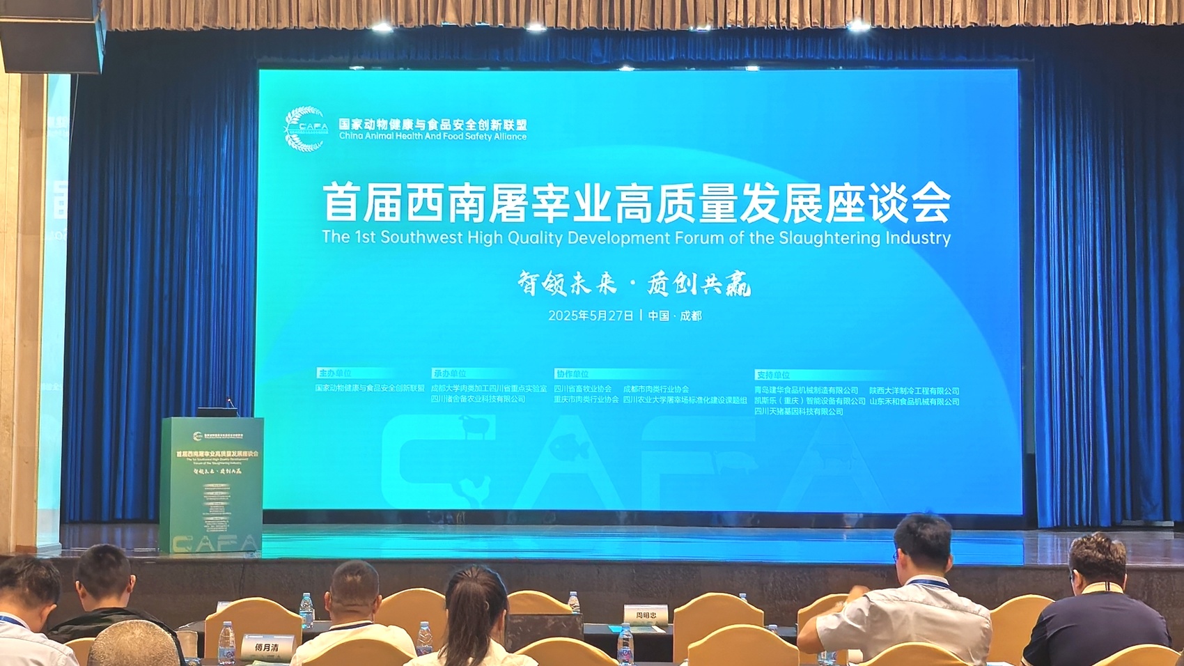西南地区是我国畜牧业重要基地、屠宰企业重要集聚地,如何帮助畜牧企业特别是屠宰企业推进数智化改造、更好降本增效?5月27日,以“智领未来·质创共赢”为主题的首届西南屠宰企业高质量发展座谈会在成都举行。会议邀请了畜牧主管部门、科研院所、行业协会以及部分龙头企业等百余位嘉宾,为西南地区屠宰行业把脉问诊、献计献策,加快推动屠宰行业向智能化、绿色化、标准化发展,全力助推西南地区屠宰行业实现高质量发展。