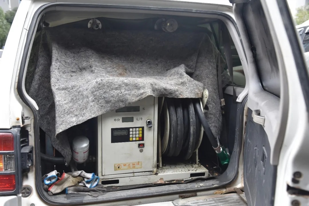 经过对被盗柴油车辆及案发周边勘查,专案组民警发现柴油被盗时间为凌晨时分,嫌疑人趁货车司机熟睡之时,利用抽油泵将油箱内柴油抽走。