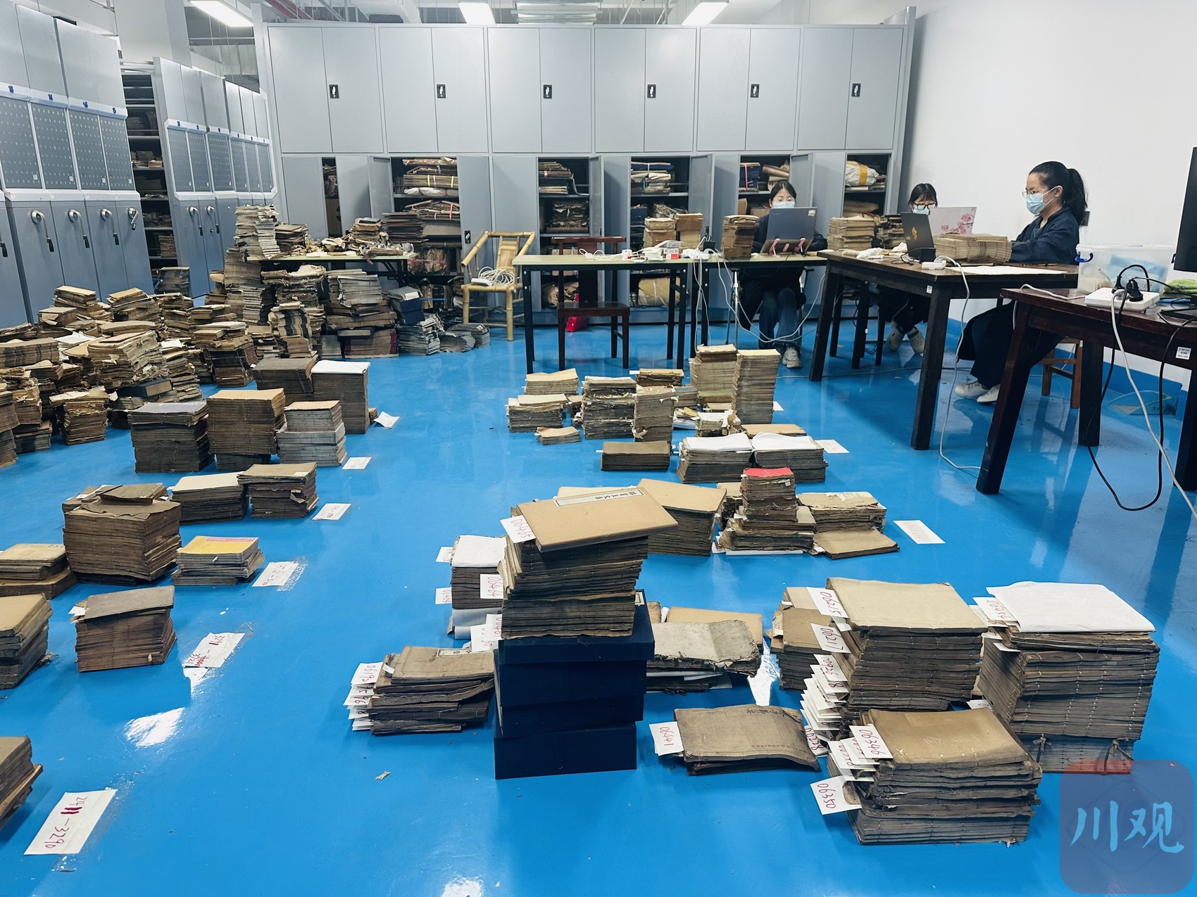 四川省图书馆里,工作人员正在整理古籍,为古籍编目。