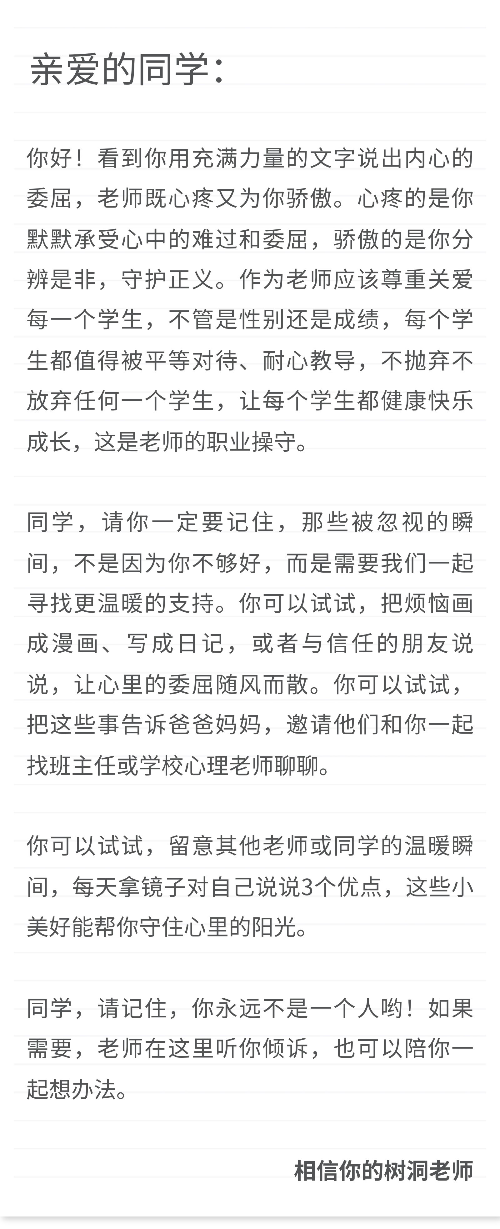 一位11岁小学女生:我们的数学老师就是个重男轻女,只信学霸,其他也不管!对差学生的问题不讲,到考试的时候考差了又说我们不好好学习!