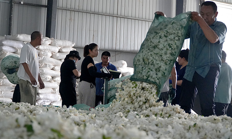 双花茶业工作人员补充说:“今年,新茶饮品牌方更加强化了品种优选。刚开始收花那几天,不符合新茶饮要求的占了两三成。”