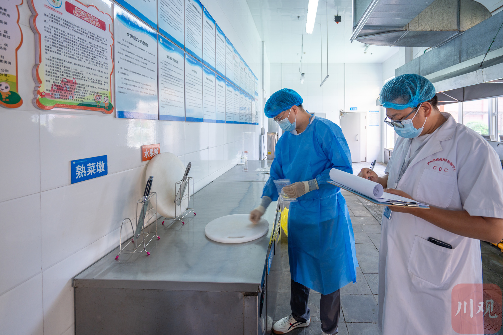 “大家把头套戴好,口罩要规范佩戴,做好防护后再进入食堂。”5月26日,在泸州市纳溪区金山坡幼儿园内,泸州市疾病预防控制中心卫生监测科副主任医师周艳一边仔细检查着防护装备,一边有条不紊地进行现场分工。