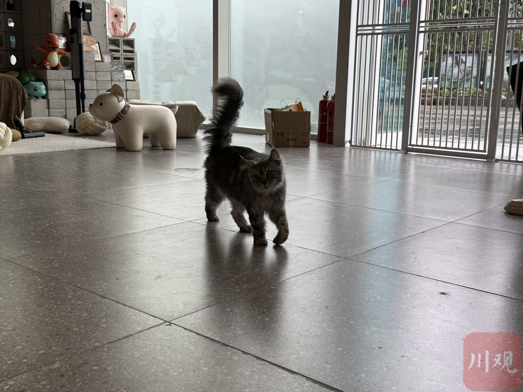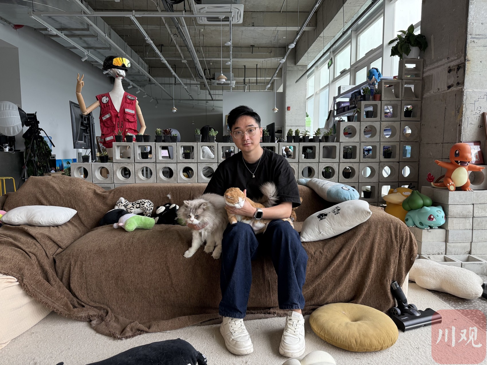 5月27日上午,记者来到位于成都市双流区的“和猫住”工作室,宇文化缘正在与店里的猫咪玩耍。