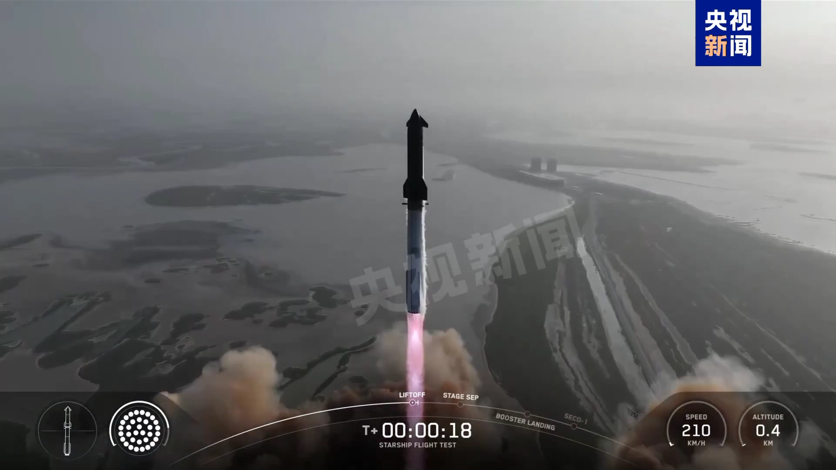 第1次试飞(2023年4月20日)升空后约4分钟爆炸。火箭发动机出现故障,第一级助推器也没有与上面的飞船分离。