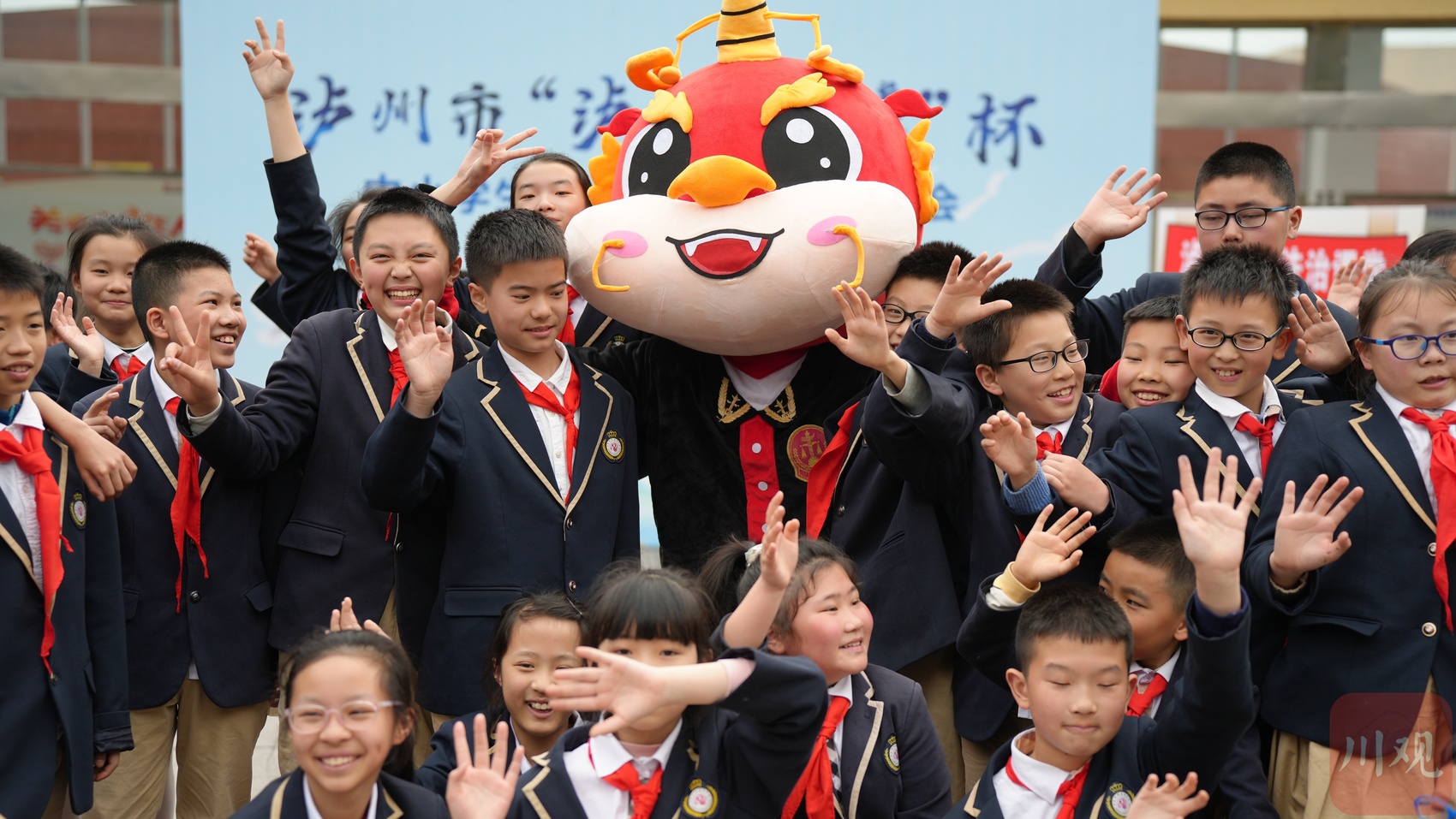 泸州中院开展“泸法麒麟”校园行活动,泸法麒麟卡通人偶与同学们热情互动。阳彬/摄