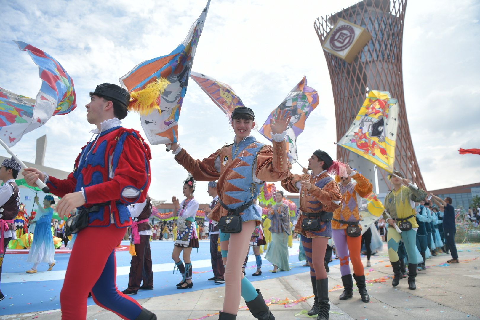 当非遗节最为吸睛的环节开幕式巡游正式开启,现场观众响起阵阵欢呼。国内外51支非遗表演队伍参演,在“江河共润”“六合同风”“寰宇和鸣”“生生不息”4个篇章中,展示了全世界不同国家和地区非遗代表性项目的丰富面貌。潮汕英歌舞威猛豪放,意大利旗舞优雅灵动,四川清音婉转悠扬,当非遗巡游突破地域界限,不同文明的对话便有了具象化的载体。