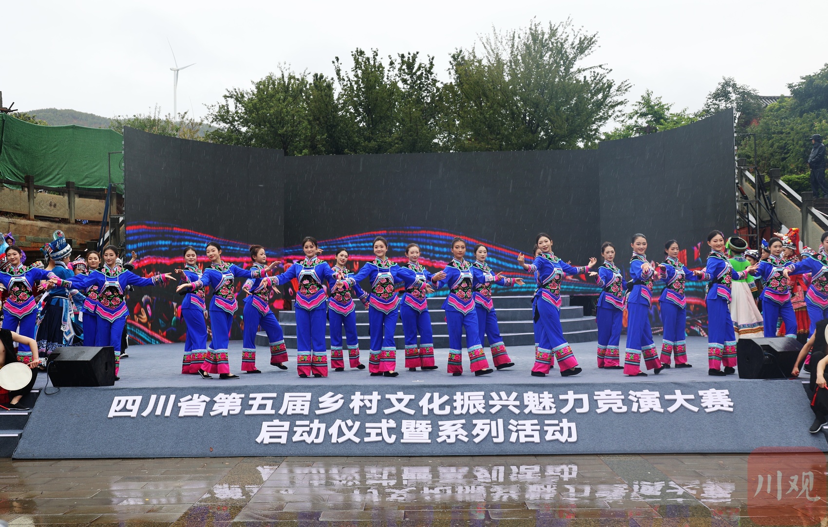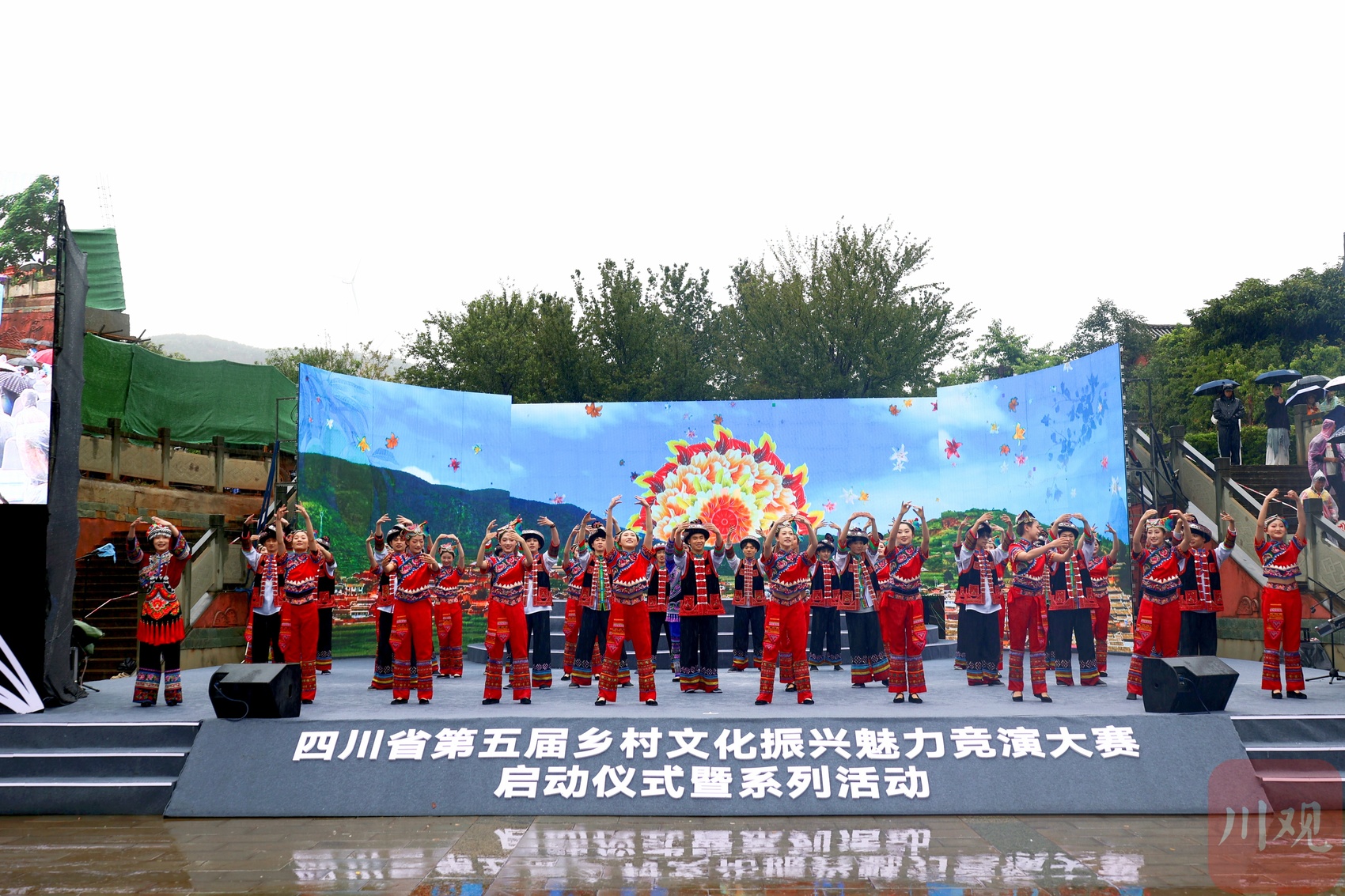 启动仪式在热情洋溢的《迎宾曲》中拉开帷幕,大赛吉祥物“乡仔”与当地卡通人物“阿俚”“阿沙”携手村民,以独具特色的“拦门酒”民俗迎接八方来客。歌舞表演、访谈、健身秀、川剧、杂技等丰富多彩的节目形式轮番登场。乡土文化、非遗传承、青春活力……传统与现代在此交相辉映,既展现巴蜀文化的深厚底蕴,又彰显新时代乡村的蓬勃朝气。