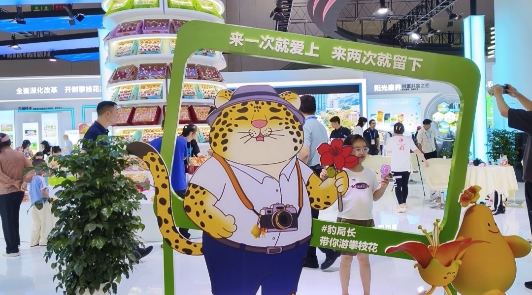 攀枝花综合展区位于中国西部博览城10号馆内,展馆面积1000㎡。“豹局长”是展区的“门面担当”,“攀芒芒”则是展区的“吉祥娃娃”。到这里,你可先和憨态可掬的“豹局长”拍照打卡,再开始吃吃吃的甜蜜之旅,游客们乐在其中、流连忘返。