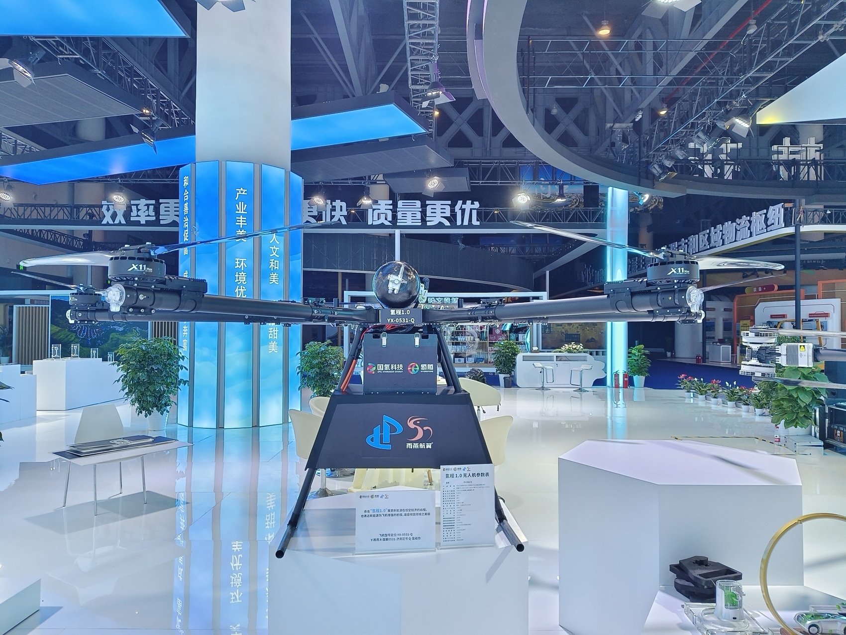 而在展区的另一面,无处不彰显着“工业强市”的“硬实力”。“攀枝花造”的首台氢能源无人机“氢程1.0”首次亮相大型展会,该机型是以钛合金为结构件的“新能源+新材料”氢能运载多旋翼无人机,在无人机行业里处于领先水平,在同等基础条件下,可大幅提升无人机作业时间及运载能力。目前,该机型最大有效飞行时间大于60分钟,相较于传统锂电池续航时间提升了3.3倍,最大负载可达50公斤,适用于多类低空应用场景。“我们希望通过西博会这个平台,让大家知道攀枝花有自己的生产制造、自己的低空经济、自己的产品,我们是有这个研发能力的。未来,我们会在攀枝花深度融合新能源、新材料来发展低空经济。”参展商、四川雨燕航翼通航科技集团有限公司董事长邓骁说道。
