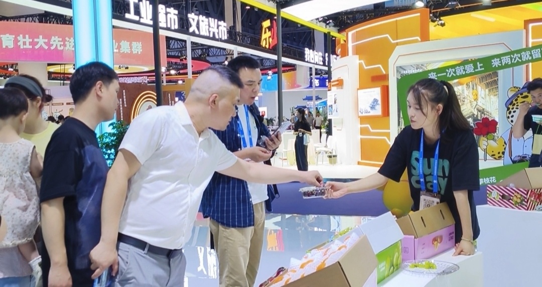 攀枝花的展品有多受欢迎?参展商、攀枝花市春鲜逸农业有限责任公司负责人赖春梅用一组数据来表达:“半个小时,就已经销售近30盒,凡是品尝了的,都加了微信,后续可以进行线上购买。从昨天下午到今天中午,已加了上百人”。