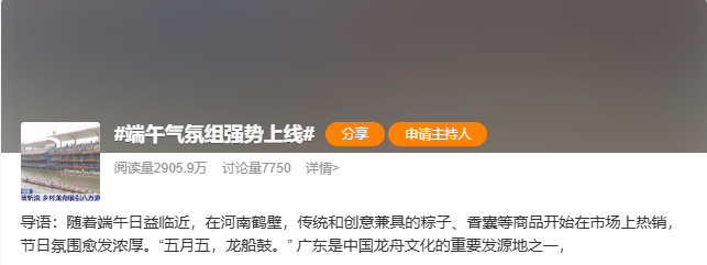 今天,#端午气氛组强势上线# #端午想放假的心藏不住了# #端午不调休 高速不免费# 等话题登上热搜,从赛龙舟、吃粽子等传统习俗,到是否出行游玩都成为大家热议的话题。