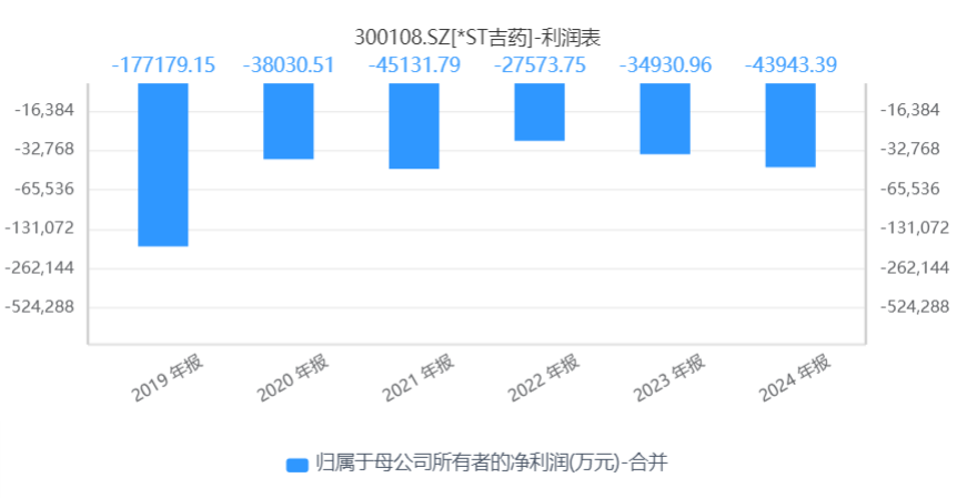 吉药控股的颓势始于2019年。当年因计提商誉减值、坏账损失等因素,公司单季度巨亏17.84亿元,此后连续6年深陷亏损泥潭。2019—2024年,公司累计亏损达36.68亿元。