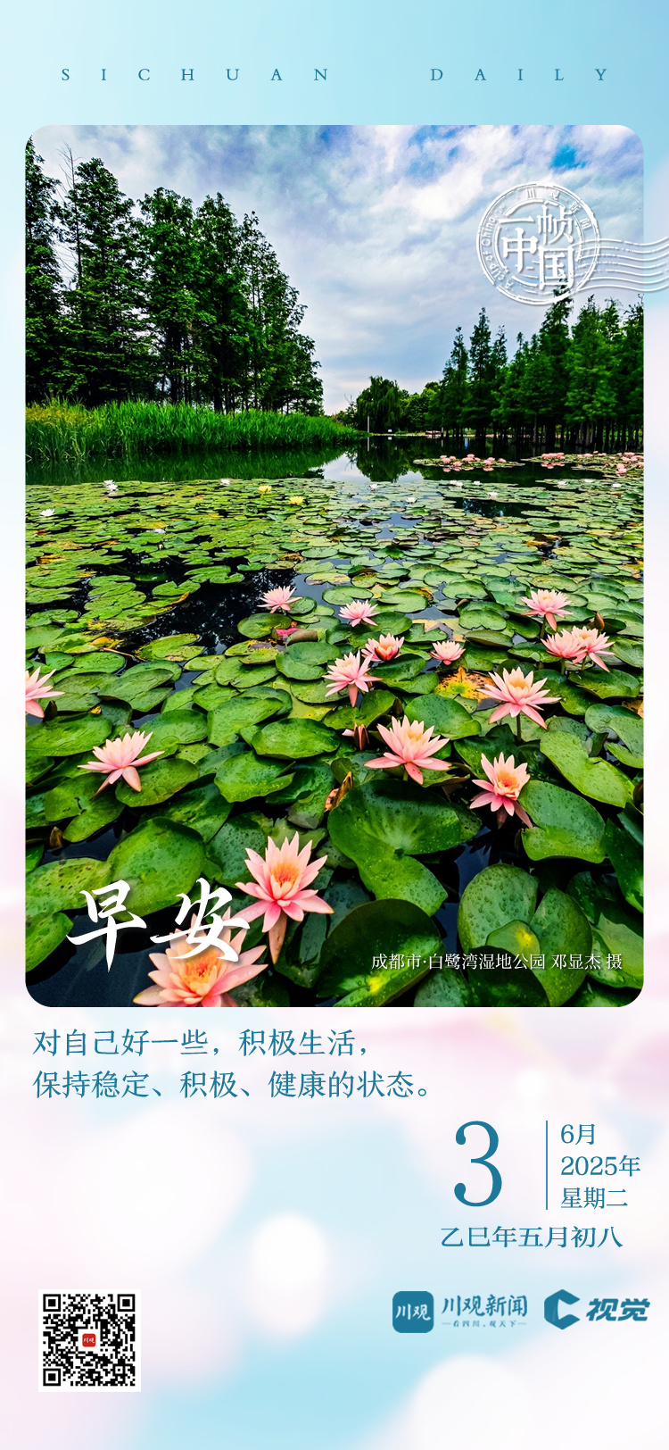 今天的《一帧中国》,川观新闻与你一起来到位于成都环城生态区的白鹭湾湿地公园,欣赏由连片水杉与朵朵睡莲构成的清幽画境。