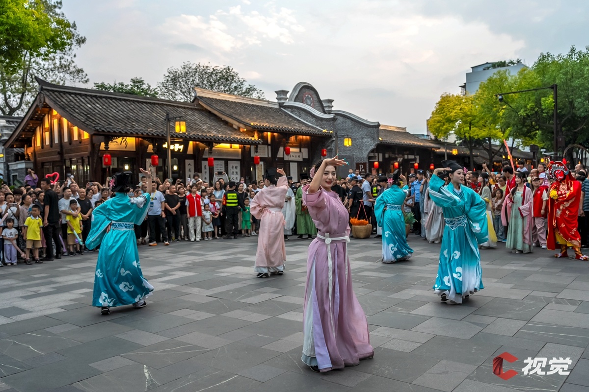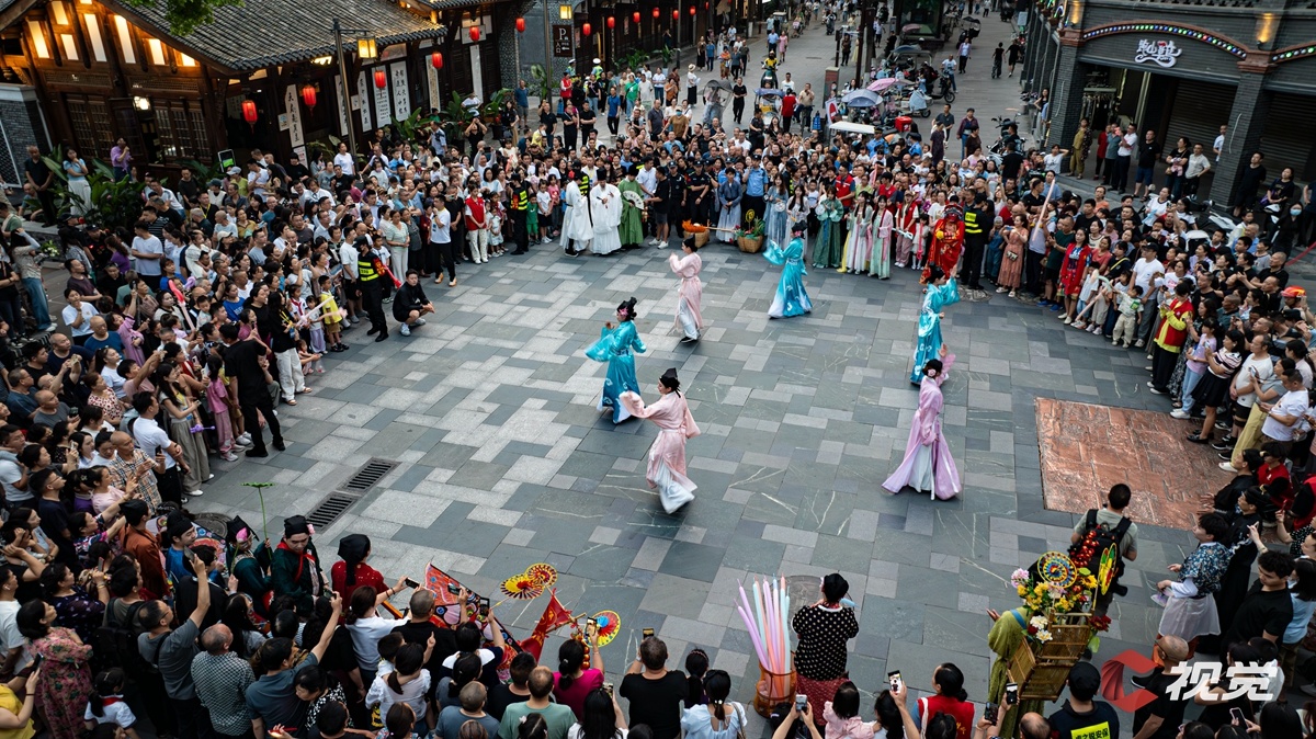 5月28日傍晚,崇州市正东街举行的古装巡游活动。
