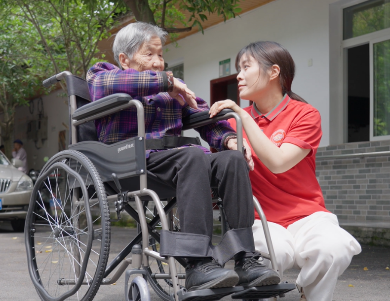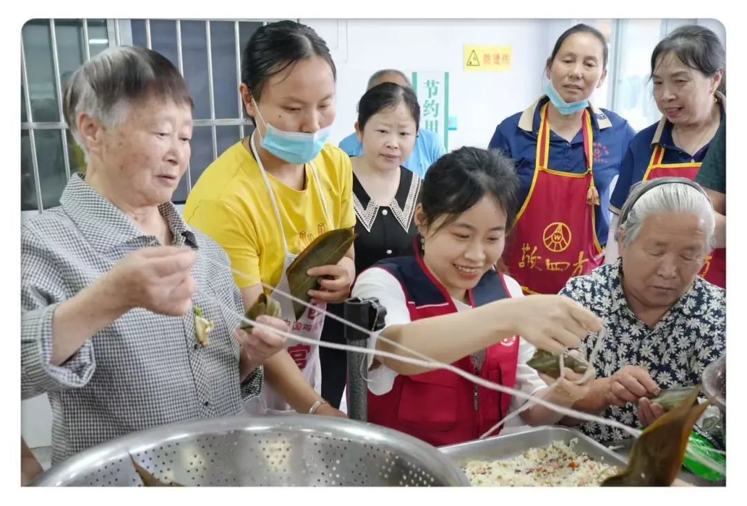 “你这个粽子包得不像那个样子哟”“才跟着婆婆学的,要理解新手嘛”……5月28日,来自福彩销售一线的志愿者们和敬老院的老人们正围坐在一起,包粽子、话家常。食堂外,两位老人正在感受此次活动捐赠的崭新轮椅和助行器,志愿者轻轻推着轮椅,或扶着老人,在院子里不时与他们交谈。