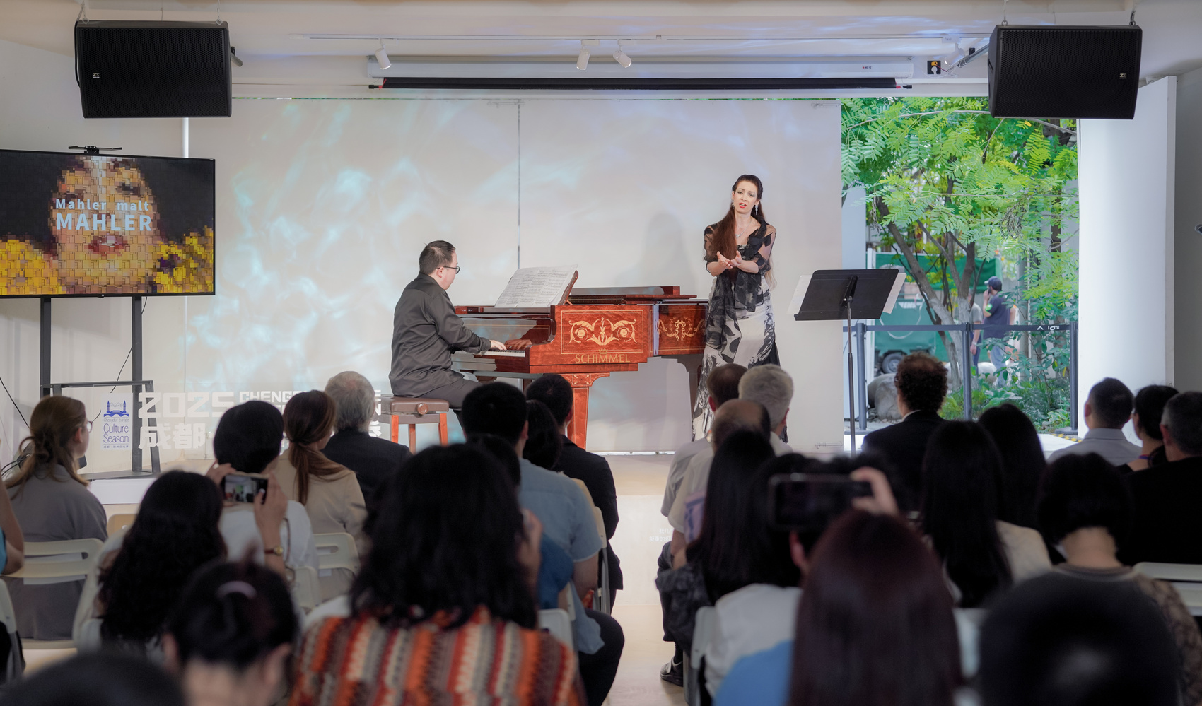 克劳迪娅·普尔用天籁嗓音生动展现了马勒早期音乐创作中对自然与生命的赞美,把观众带回十九世纪的音乐梦境。彼得·马勒分享了先辈古斯塔夫·马勒在创作初期时的生活经历与创作灵感,在青年时期对音乐的执着追求,以及当时奥地利音乐文化环境对他的影响。在艺术交流分享接近尾声时,两位音乐家又为现场观众带来最具奥地利城市精神和历史印记的轻歌剧选段《嘿呀,我的家乡在山里》《侯爵请听》,优美而风趣的歌声让现场观众从另外一个维度感受到了奥地利音乐魅力和维也纳城市气质。