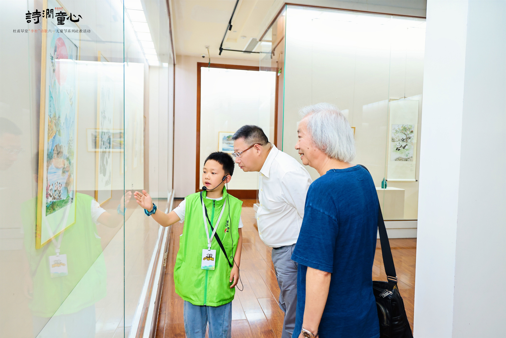 小朋友在书画作品展览现场充当解说员