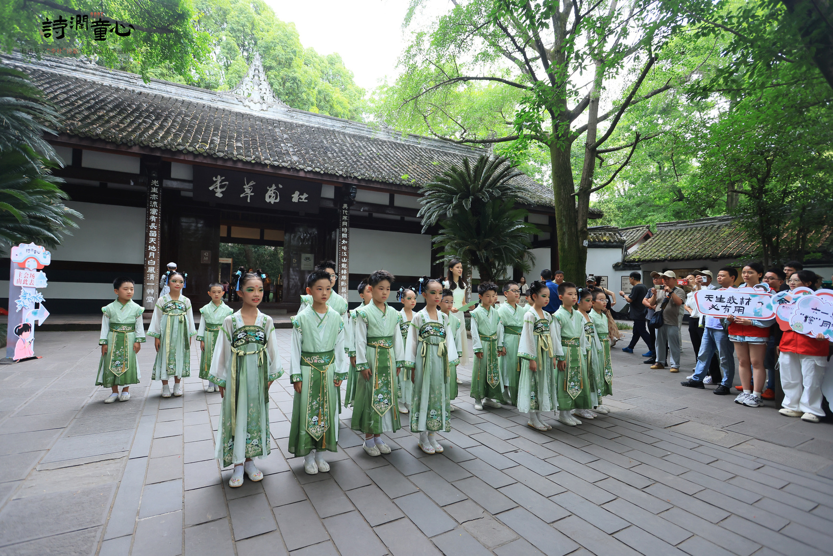 小朋友在杜甫草堂景点开展文艺快闪活动