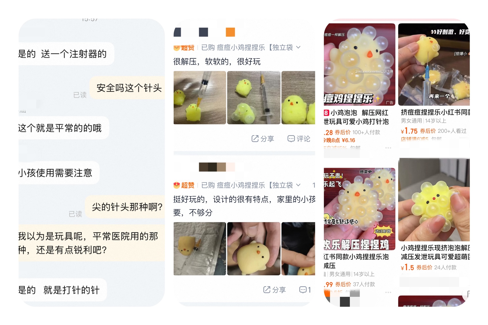 “小鸡打针泡泡玩具”电商销售火爆,针头安全存疑。网页截图
