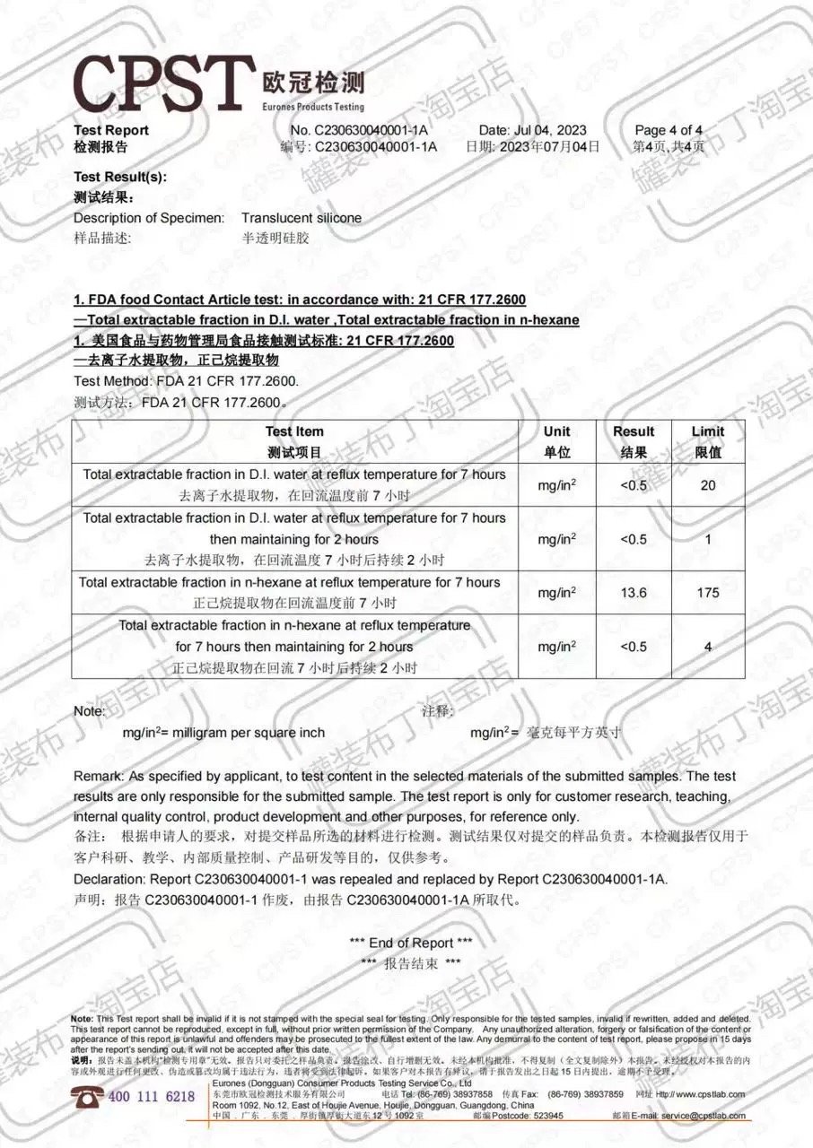 电商平台店铺提供的”捏捏玩具“硅胶材料检验证书。