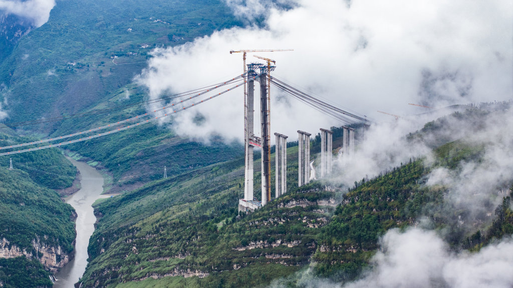 天门特大桥是安顺至盘州高速公路的重要控制性工程,大桥全长1553米,桥面距离峡谷水面约560米,设计时速100公里。