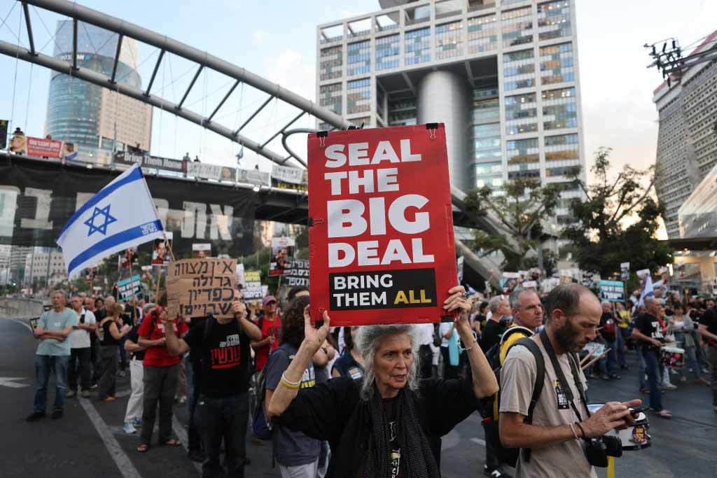 5月28日,新一轮巴以冲突已持续600天。以色列民众当日在特拉维夫举行集会,呼吁以色列政府尽快在加沙实现永久停火,与巴勒斯坦伊斯兰抵抗运动(哈马斯)达成协议。