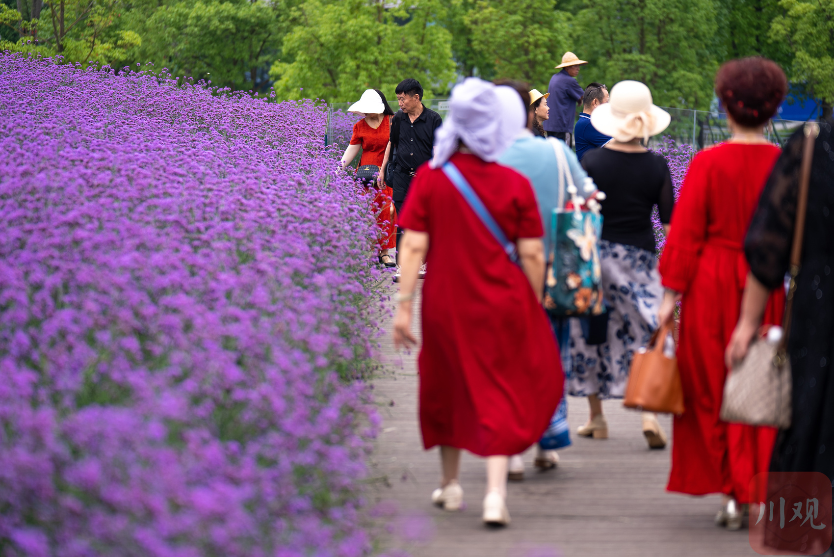 5月29日下午,一场小雨为成都市温江区星河World·科创城公园带来了别样清新,园内马鞭草迎来盛花期。成片的紫色花朵肆意绽放,微风轻拂,似紫色海浪翻涌,如梦似幻。