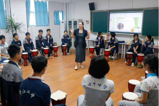 专家团队成员四川文理学院心理健康与发展中心主任罗方芫老师为开江二中学生代表开展《鼓圈音乐疗愈》团体辅导。
