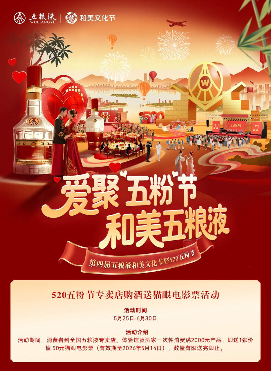 在线下全国五粮液专卖店,第三重惊喜正在上演:消费者只要在五粮液专卖店一次性消费满2000元,同样可获赠50元猫眼电影通兑券1张。该活动将持续到6月30日,数量有限,先到先得,抓紧时间行动吧。