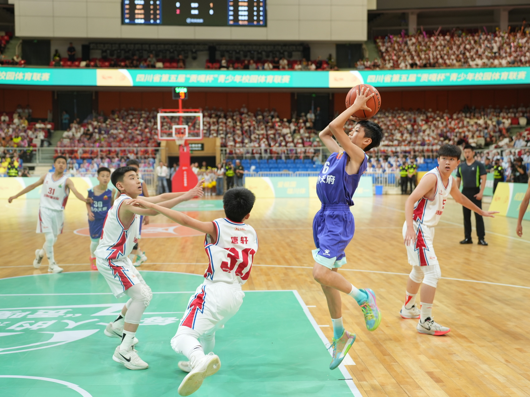 5月30日,在四川省体育馆,随着裁判一声哨响,记分牌定格在99:77,四川省第五届“贡嘎杯”青少年校园体育联赛篮球小学男子组冠亚军争夺尘埃落定。随后,第五届“贡嘎杯”举行了闭幕式。