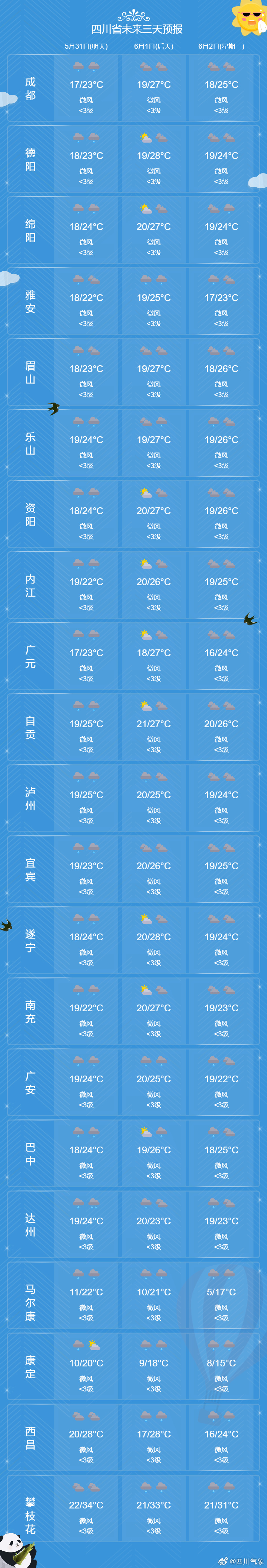 ★下面送上四川省气象台预测的端午假期全省逐日天气预报↘↘