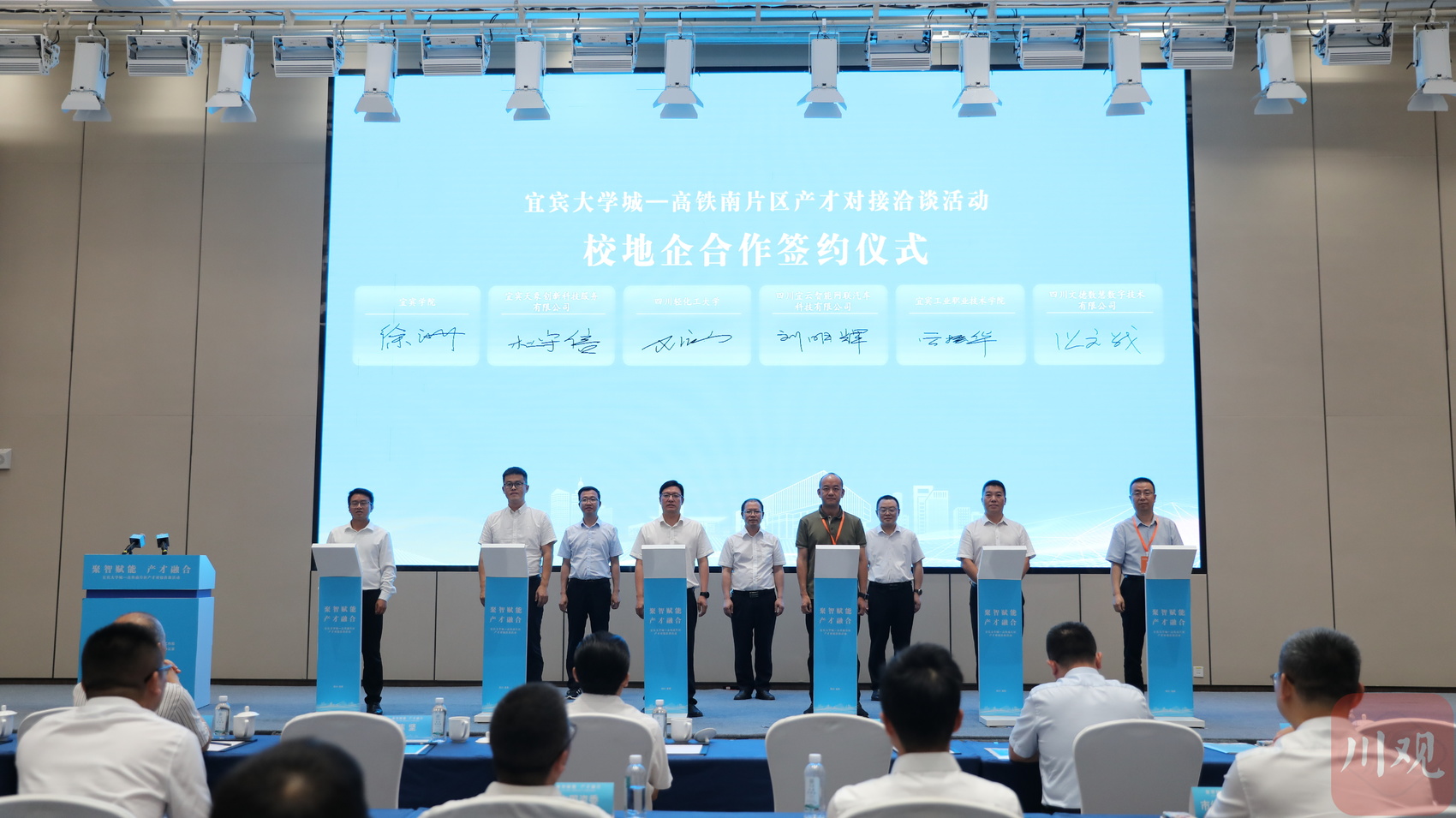 活动上,校地企举行两轮合作签约,高铁南片区与西南交通大学宜宾研究院、西华大学、宜宾职业技术学院签约,宜宾高铁南片区三家企业分别与四川轻化工大学、宜宾学院、宜宾工业职业技术学院签约。