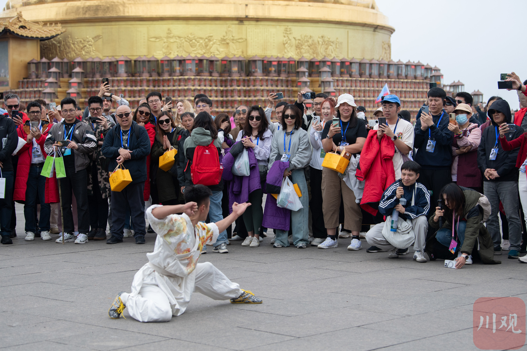 在峨眉山景区,武术表演吸引了不少嘉宾观赏。