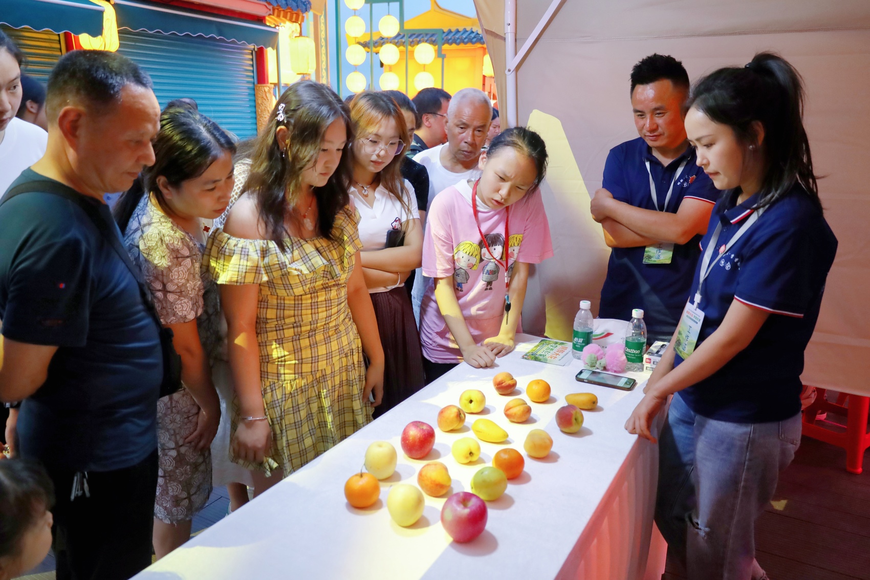 夜幕降临,广安文旅消费新场景持续升温。在广安不夜城,人潮涌动,2025广安大龙黄桃暨彭家香李产销会活动自30日晚开幕以来,热度持续攀升,水果展销、果王争霸赛、桃李市集、趣味游戏、猜灯谜……现场洋溢着浓厚的丰收喜庆氛围,通过打造线上线下联动的沉浸式农产营销+文旅体验活动,推动农文旅融合发展,让夜间经济释放消费活力。