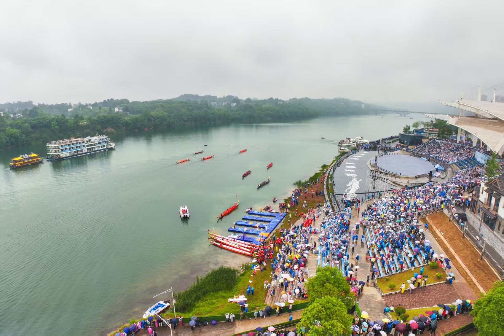 民俗活动精彩纷呈,让市民游客沉浸式体验端午文化。“加油!加油!”在武胜县嘉陵江畔,第29届“嘉陵水利杯”端午龙舟赛开幕,吸引24支队伍、近千名选手参赛,舵手们随着鼓点奋力划桨,岸边上万名观众呐喊助威,通过传统竞技与文旅体验的深度融合,让游客们感受节日的浓厚氛围。