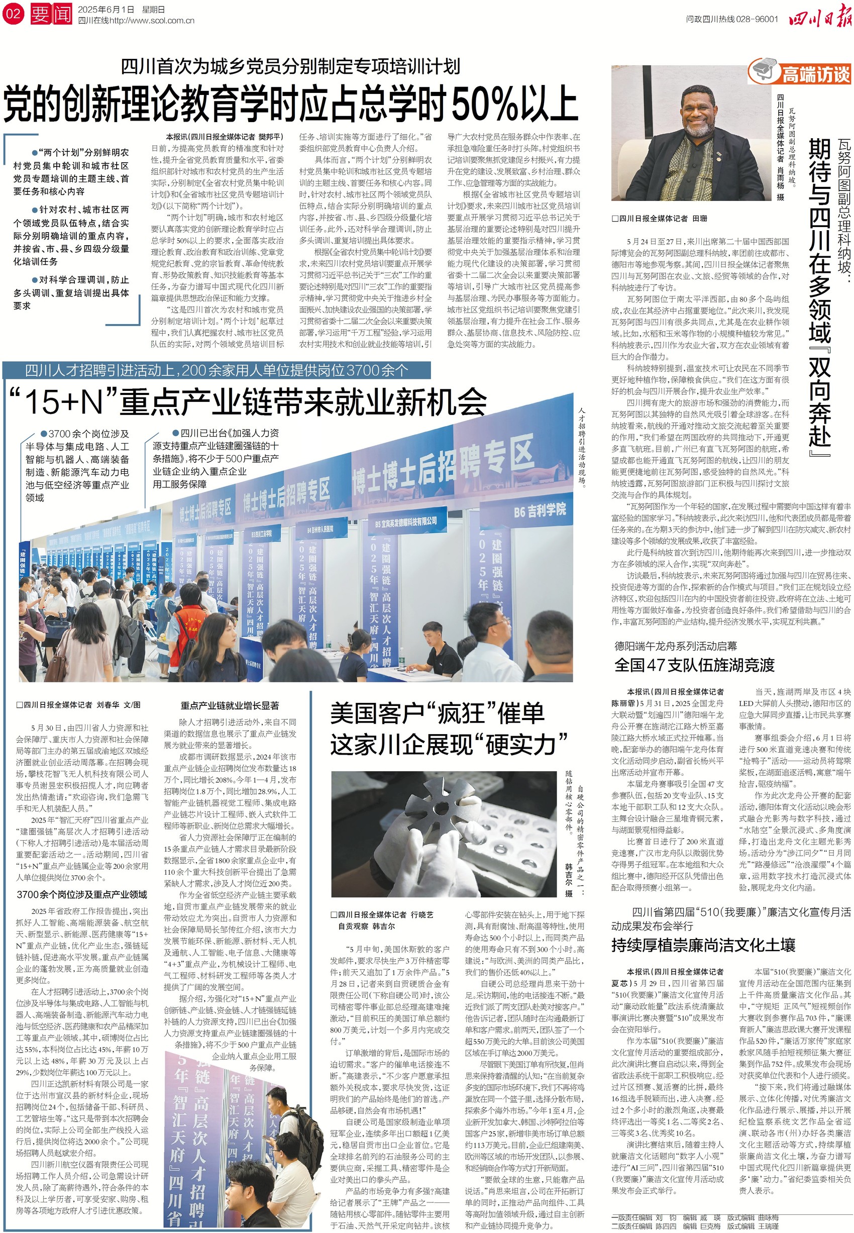 第五届成渝地区双城经济圈就业创业活动周5月30日落幕。招聘会现场释放3700余个岗位。硕博需求占比55%,百万年薪岗位现身。人工智能、新能源等重点产业链企业组团揽才,四川新川航空仪器等企业开出"高薪+安家补贴"组合激励。数据显示,成都重点产业链岗位同比激增208%,重大科创平台人才需求突出,四川省已出台专项政策强化人才支撑。详见今日二版。