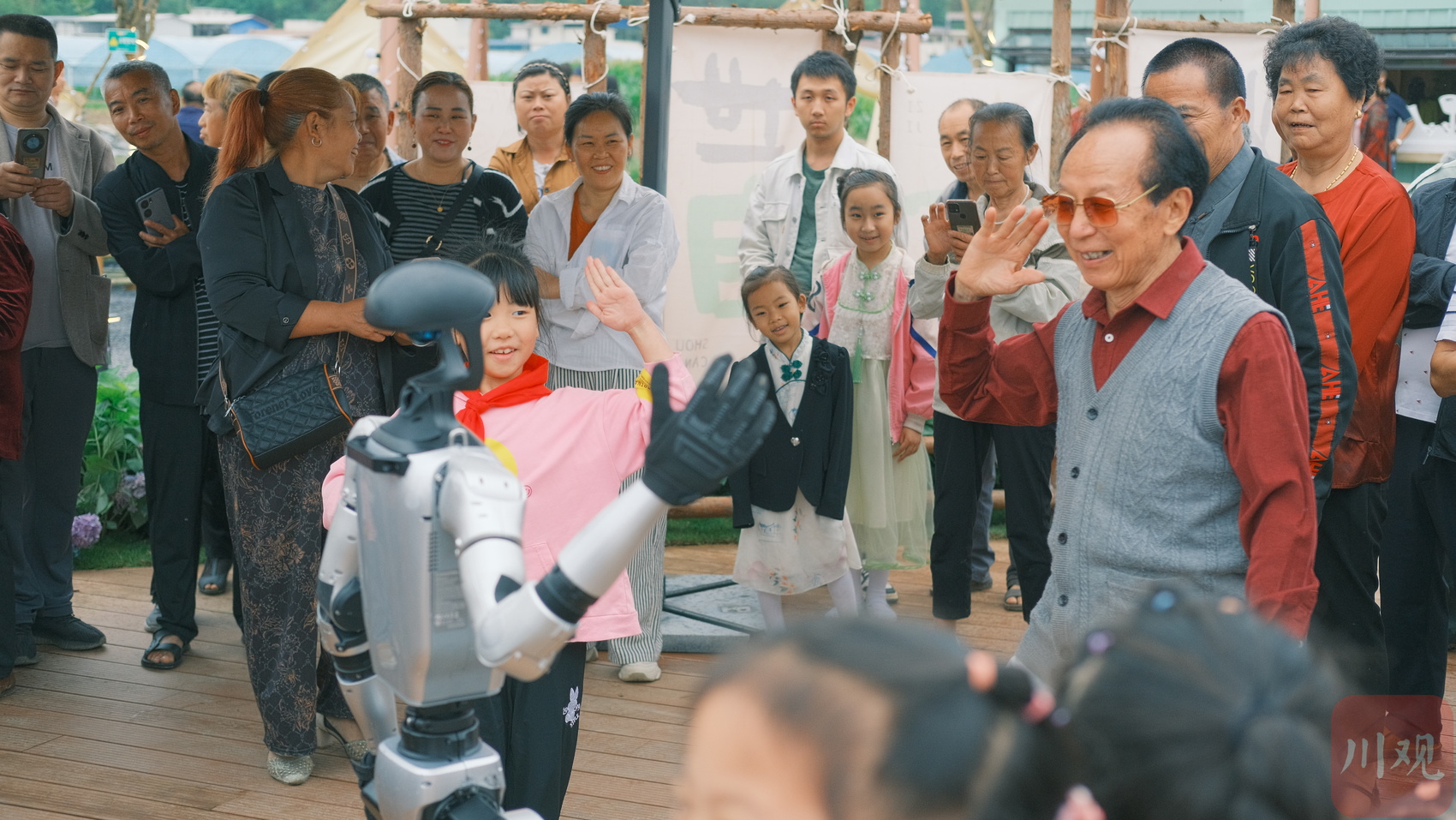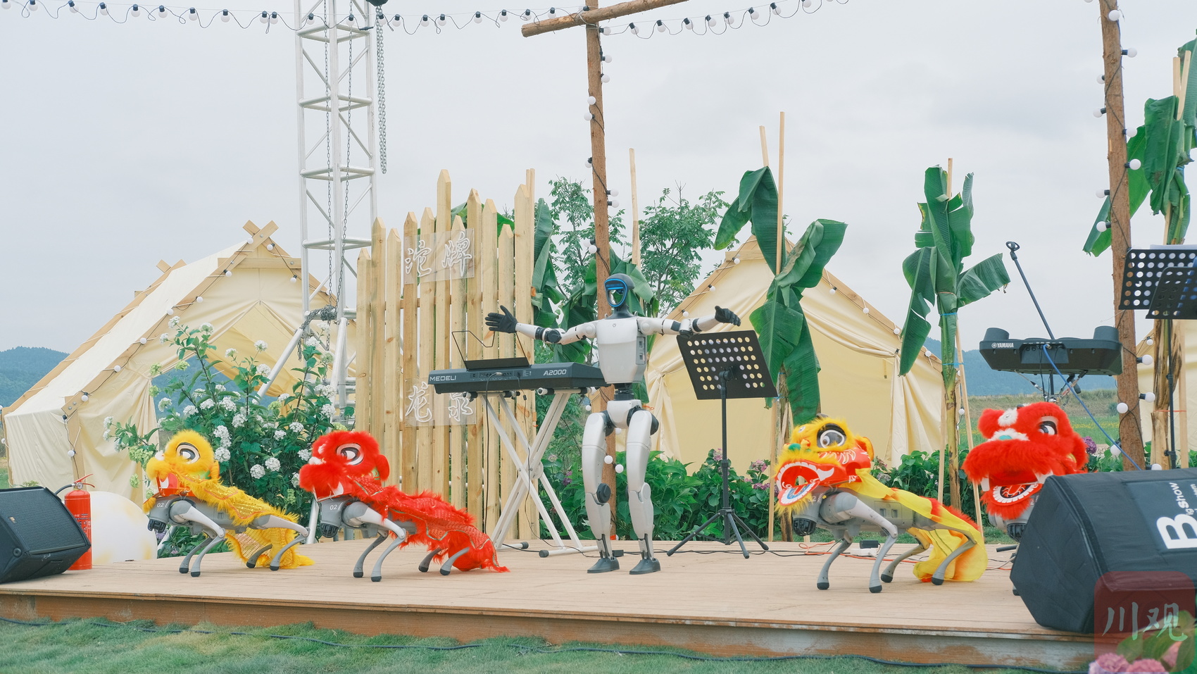 传统节日也有新鲜感。活动现场,机器人和机器狗展示了舞蹈、握手、翻滚、跳跃等动作,并与游客近距离互动。“之前在电视上看的春晚机器人表演,没想到在家门口也能看到了!”来自龙泉村的大学生马俭兴奋地与机器狗合影。