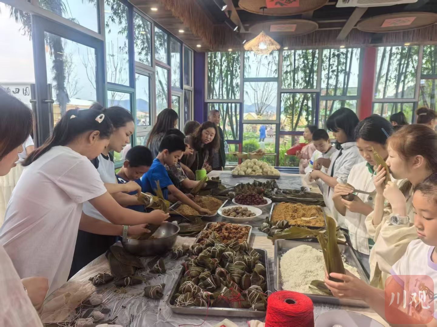 “美食工坊”粽叶飘香,在工作人员教学下,游客参与包粽子、捏包子等活动。共享美食,活动还邀请了当地80岁以上老人免费用餐。