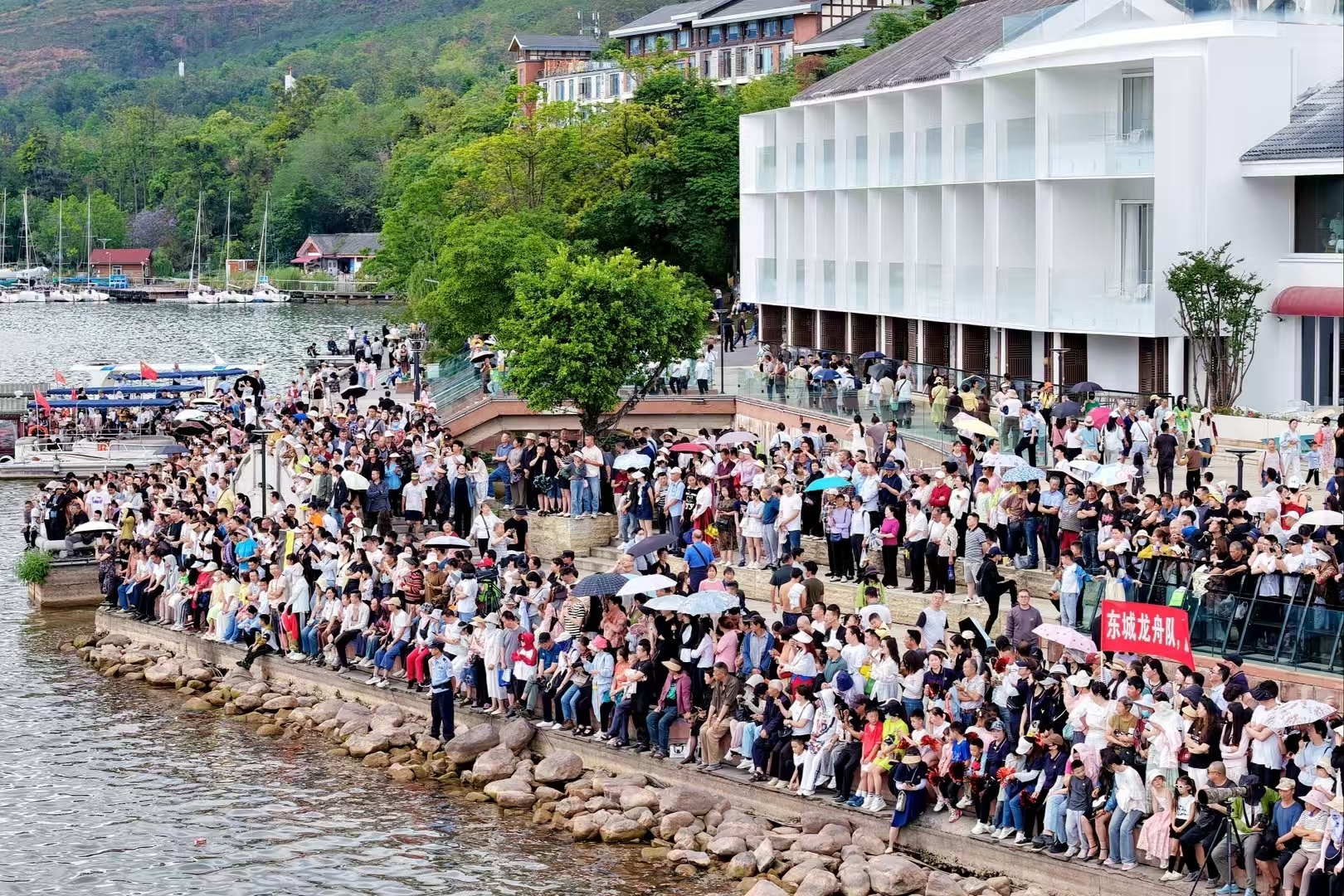6月1日举行的企业组娱乐赛、专业组比赛最具看点,平日西装革履的商界精英化身水上蛟龙展开角逐。专业组200米竞速决赛、500米竞速赛上演“速度与激情”,在邛海上掀起阵阵浪花,让现场观众和游客大呼过瘾。不少游客一边观看龙舟比赛,一边用手机记录精彩瞬间,把此情此景放到网上与好友分享。