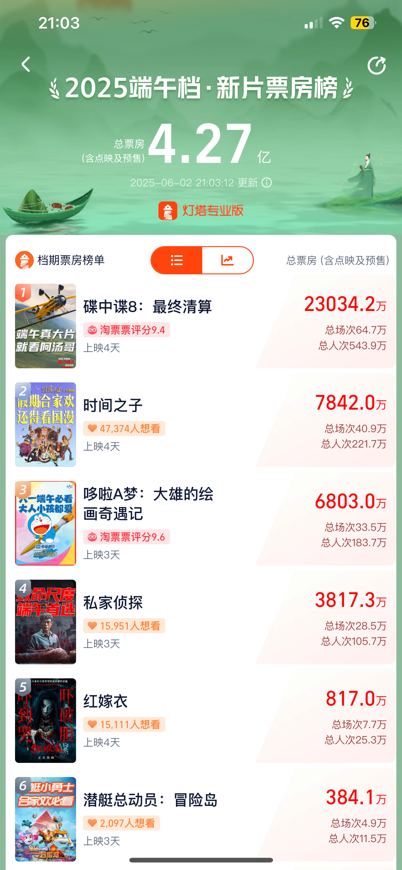 端午假期,影市佳讯频传。据灯塔专业版数据,截至6月2日21时,2025年端午档电影总票房已突破4.27亿元,其中仅6月1日儿童节当天,全国票房就突破2亿元,大幅超过去年同期表现。