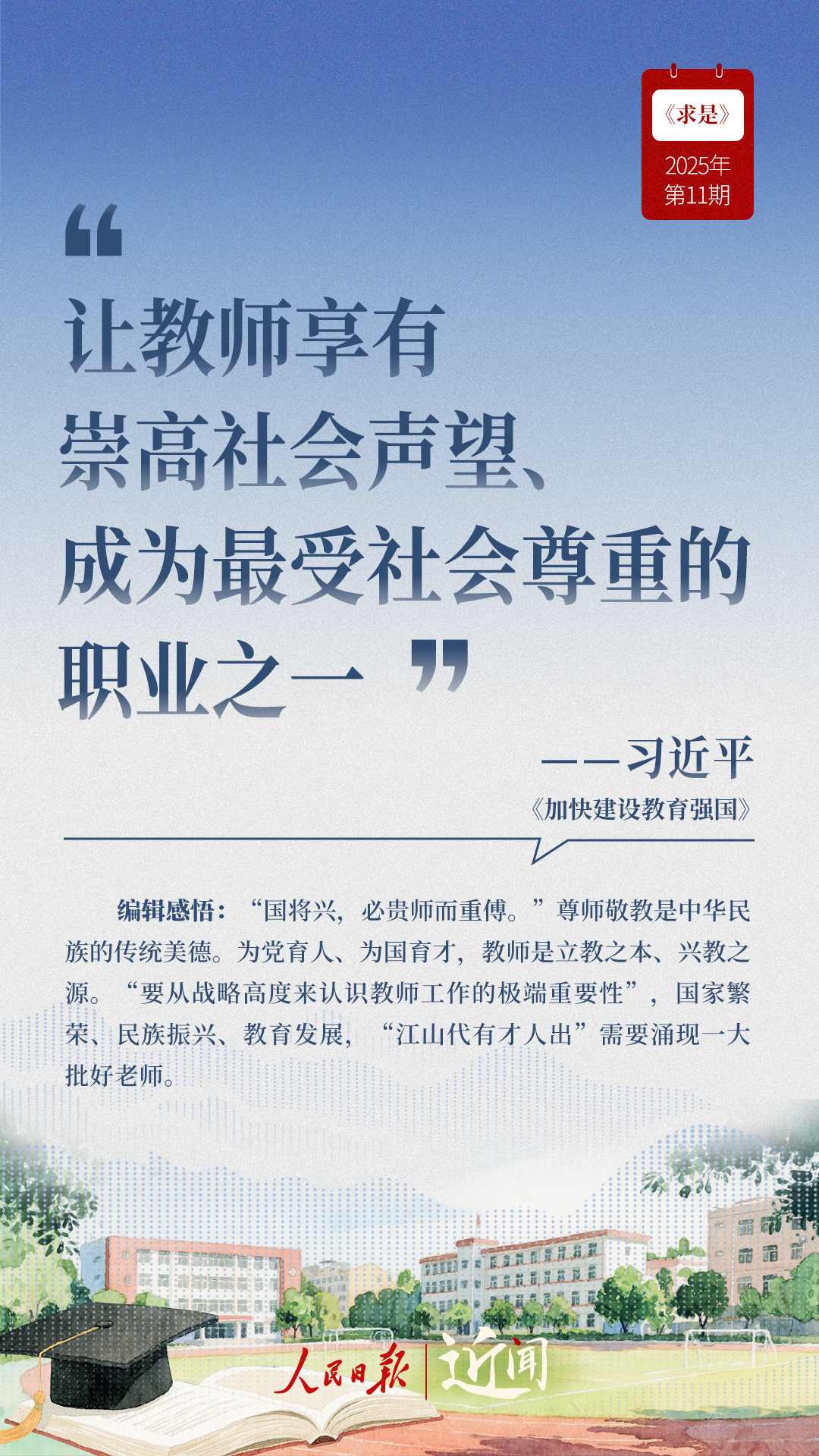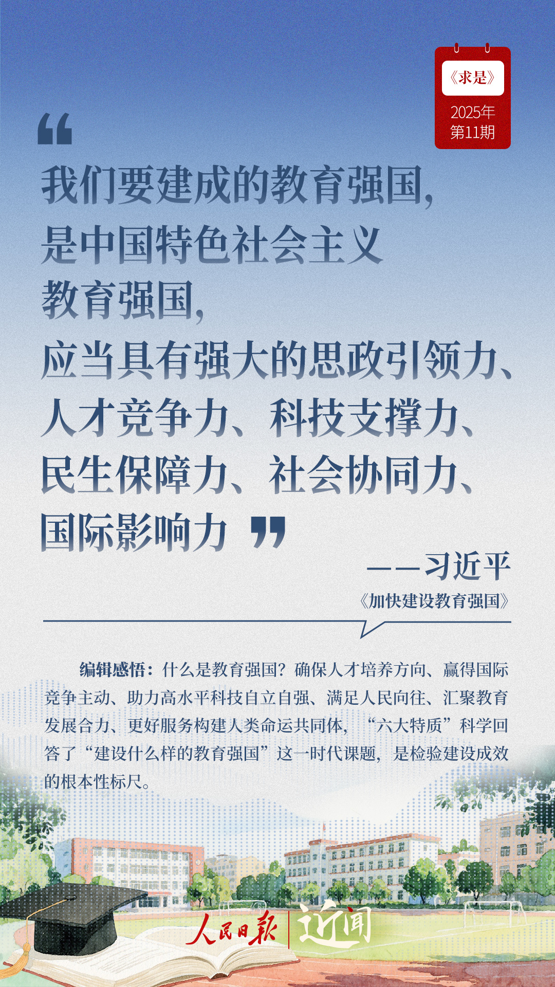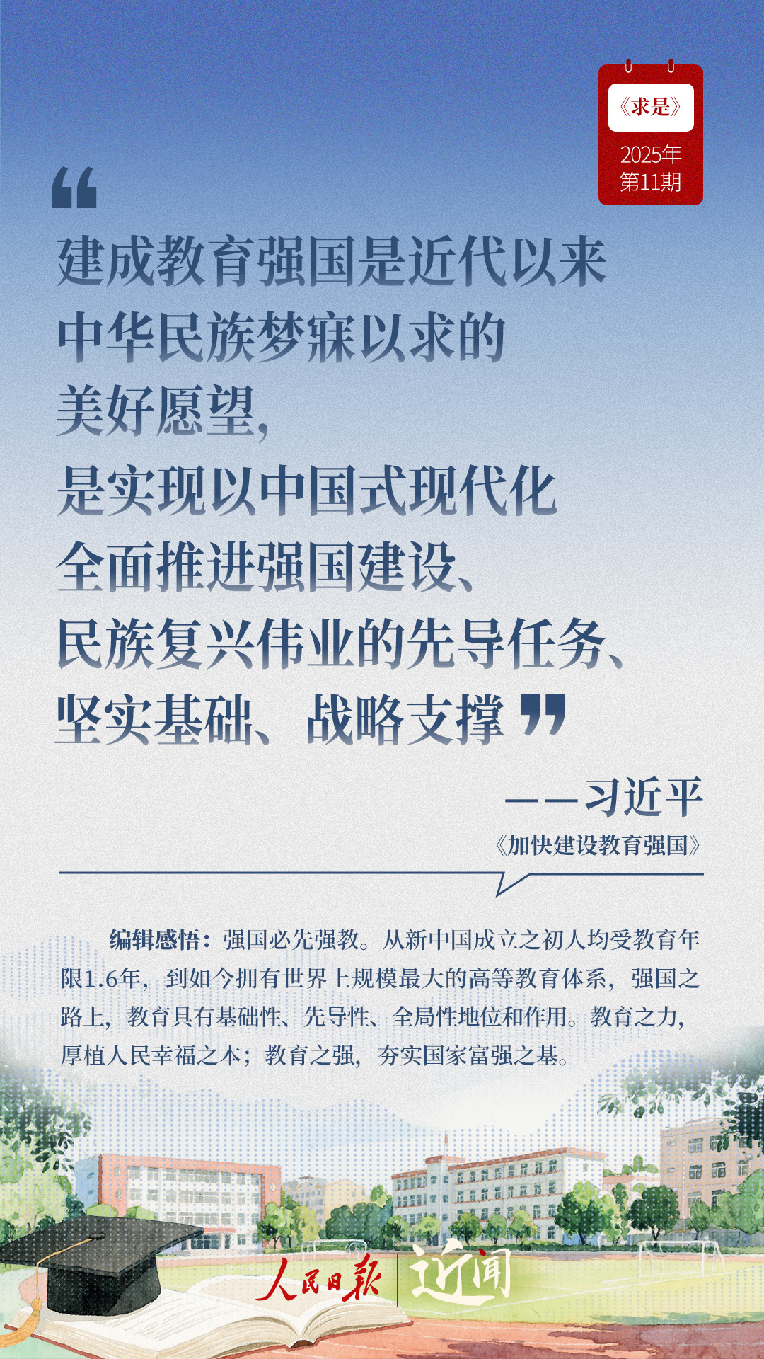 教育是国之大计、党之大计。日前,《求是》杂志发表习近平总书记重要文章《加快建设教育强国》。“全面把握教育的政治属性、人民属性、战略属性”“让教育改革发展成果更多更公平惠及全体人民”“让教师享有崇高社会声望、成为最受社会尊重的职业之一”……通过这些话,一起感悟习近平总书记对教育强国建设的谋划与部署。
