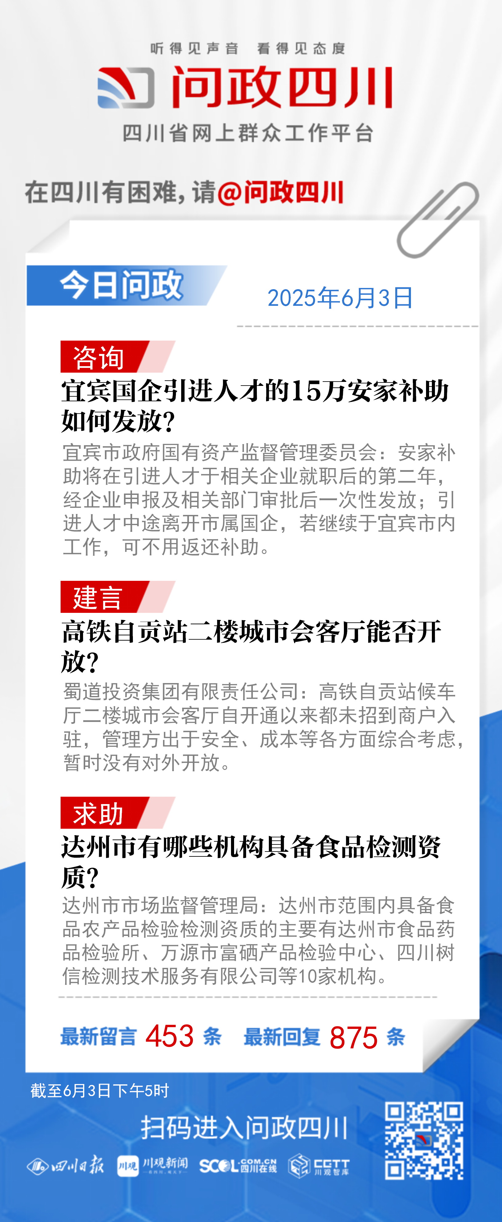 问政四川网友提问:宜宾市属国有企业引进人才,15万一次性安家补助是分年发放还是全部发放?如果引进人才中途离开市属国企,但还是在宜宾市工作,需要返还这笔安家补助吗?