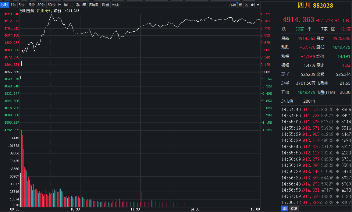 四川指数涨 1.19%,区域市场交投活跃,资金关注川股。