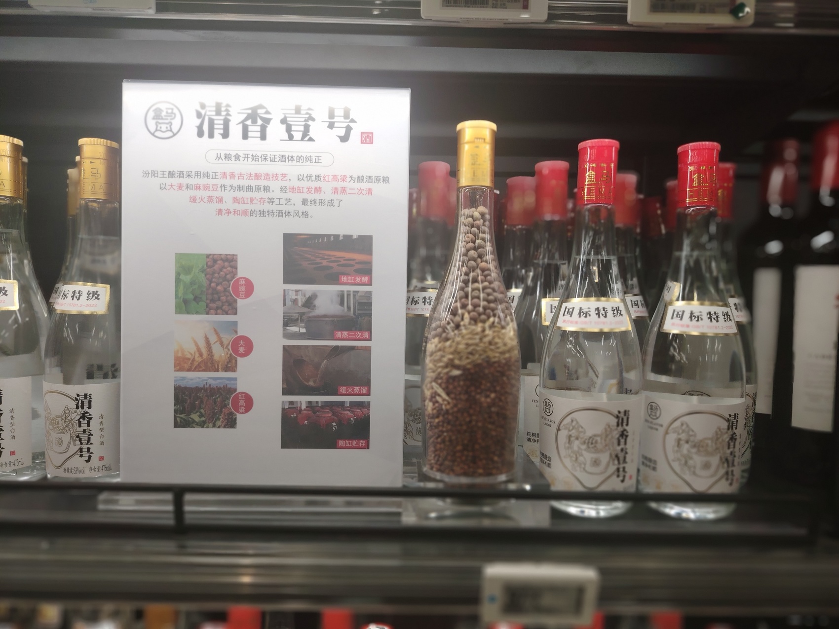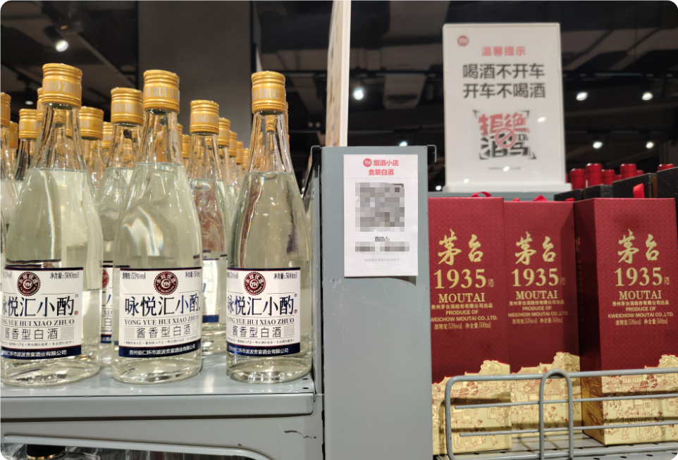 记者还发现,除了胖东来的“素牌”酒之外,永辉超市也推出一款酱酒产品,同样为光瓶风格。