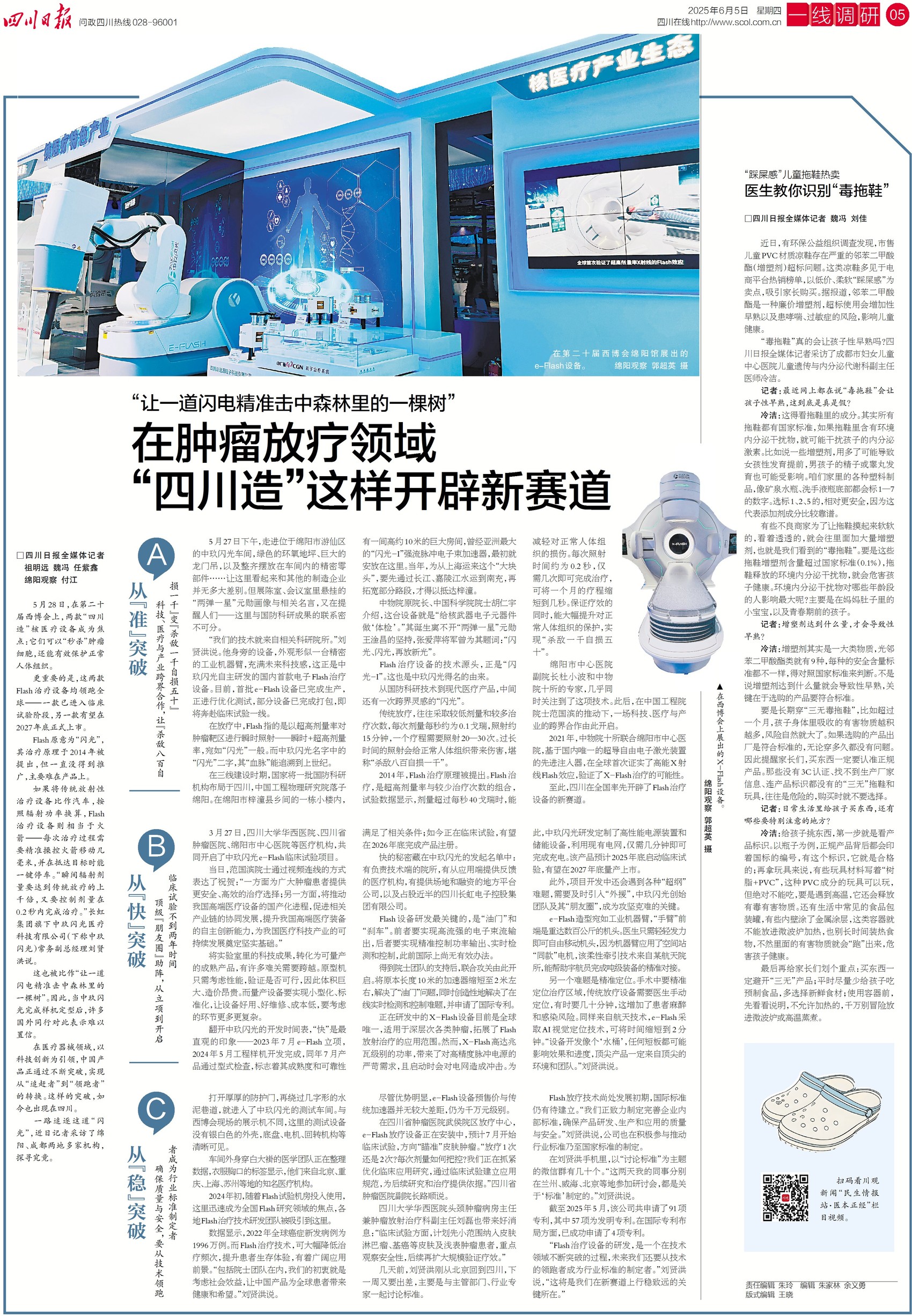 一道“闪光”亮起,肿瘤细胞被瞬间消灭,这一科幻电影中的场景正在四川变为现实。来自四川企业中玖闪光公司的两款Flash设备,在放疗领域领跑全球,让“杀敌八百自损一千”变“杀敌一千自损五十”,将为肿瘤患者提供更安全、高效的治疗选择。关注今日五版,跟随记者一起走进中玖闪光,感受“四川造”如何从“追赶者”变“领跑者”。